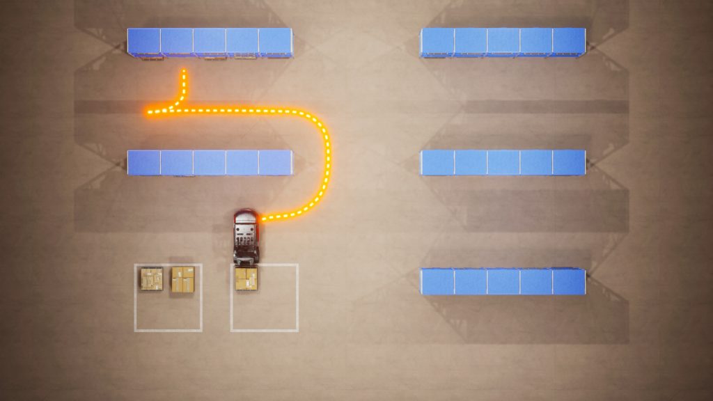 物流現場や工場をバーチャル工場・倉庫として再現します。図面や数値だけでは捉えにくい現場の空間的な課題を映像のような3DCGで可視化することで、課題の把握や改善策検討や将来設計をより直感的に行うことが可能です。立体的にレイアウトや導線設計を検証できるため、導入前にリスクを低減できることが挙げられます。